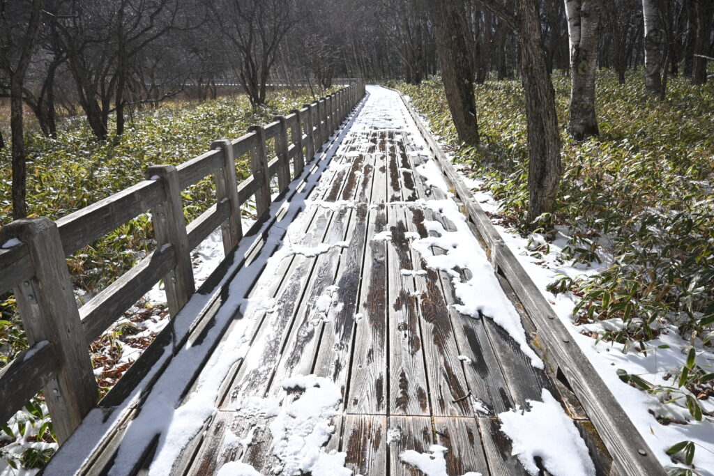 小田代歩道も1㎝ほどのうっすらとした積雪がありました。