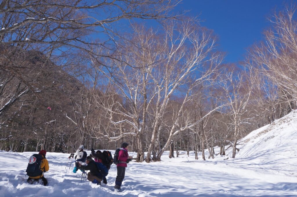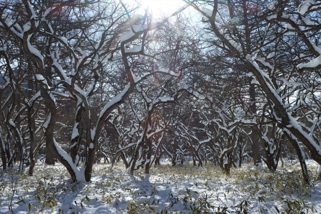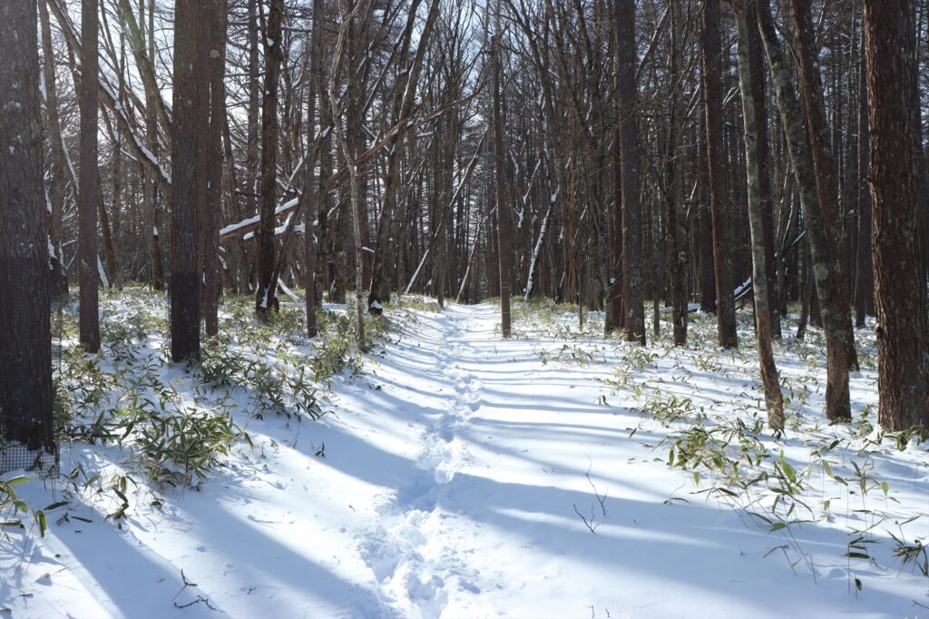 時折カラ類などの小鳥の声は聞こえましたが姿は見えず、積もった雪の吸音効果も相まって、光徳沼周辺はシーンと静まり返った静寂の銀世界となっていました。