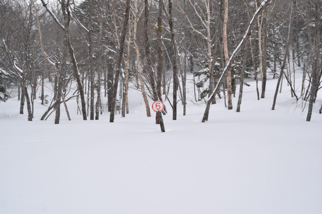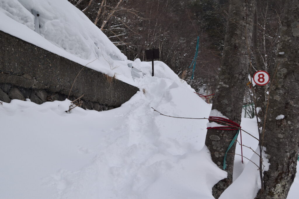 雪がたくさん降って、看板がすごく下に感じます!このあたりで積雪120cm、新雪が20cmほどです。