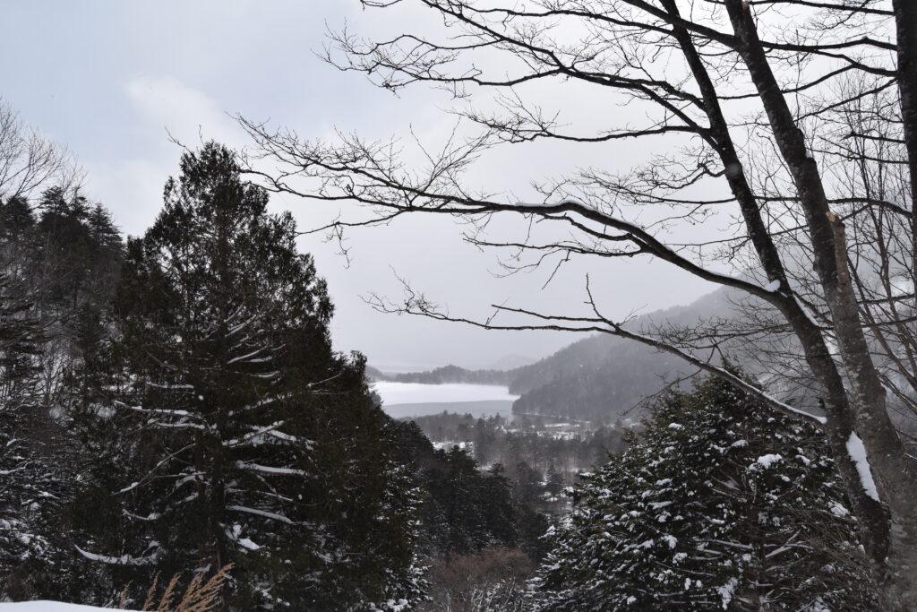 雪が降っていて、遠くまでは見通せませんでしたが白い空と白い湯ノ湖の冬らしい景色を見ることができました!
