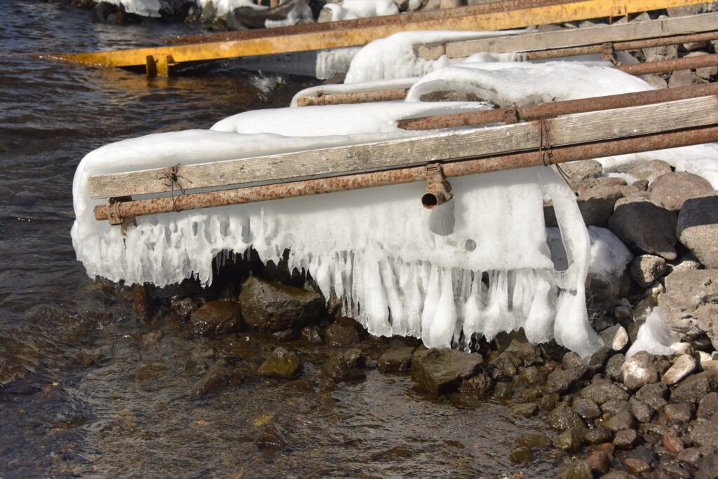 また、強い風と波の影響で船着き場の杭や水際の石には様々な形の飛沫氷を見ることができ、より一層冬の奥日光らしい光景も楽しめました。