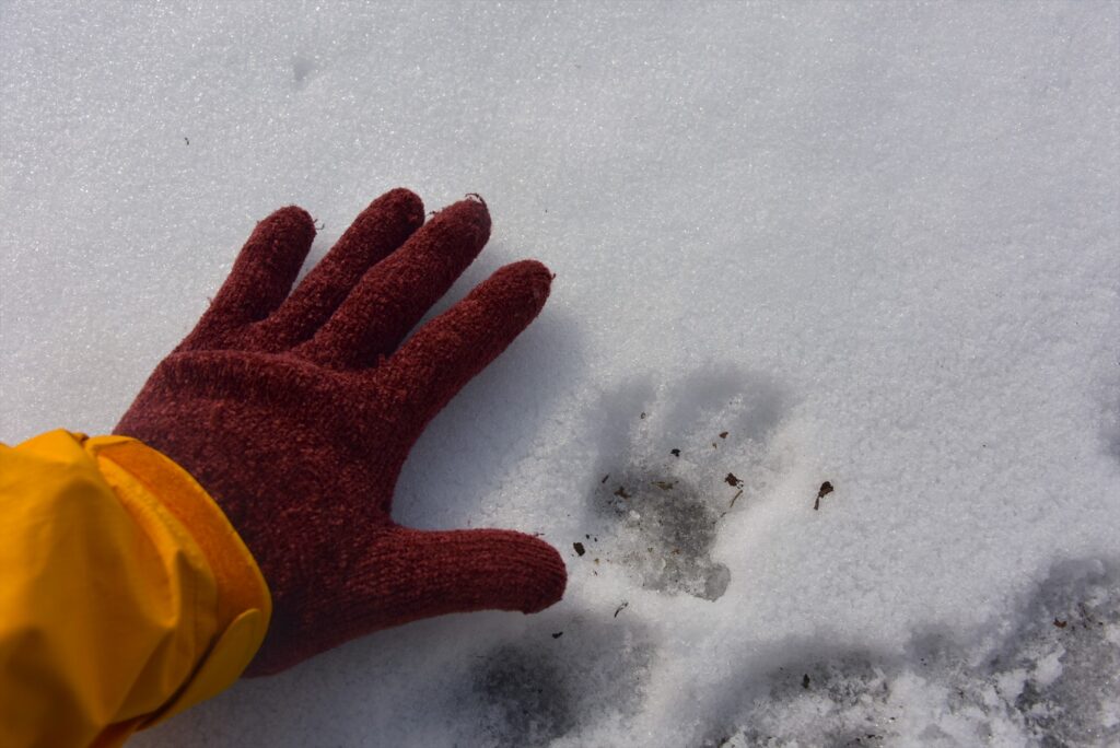 動物の痕跡以外にも雪上では色々な物が落ちています。今回はなんと野生のカルパスを見つけることができました。