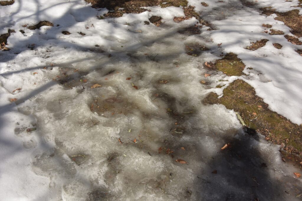 今回歩いたコース上では20㎝程の積雪や階段・休憩所付近に凍結した場所が多く見られました。歩かれる際は、チェーンスパイクなどの装備を準備して足元にお気をつけてお楽しみください。(しゅんか)