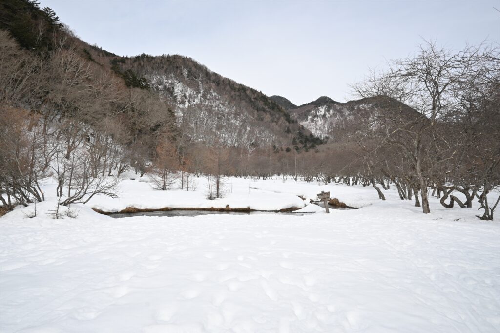 光徳沼に到着すると、こちらもまだ雪景色が見られました。
