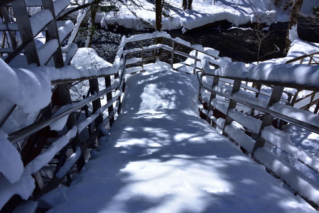 ※観瀑台から降りる階段のところが、雪でスロープのようになっていたので、通るときは転落にお気を付けください!