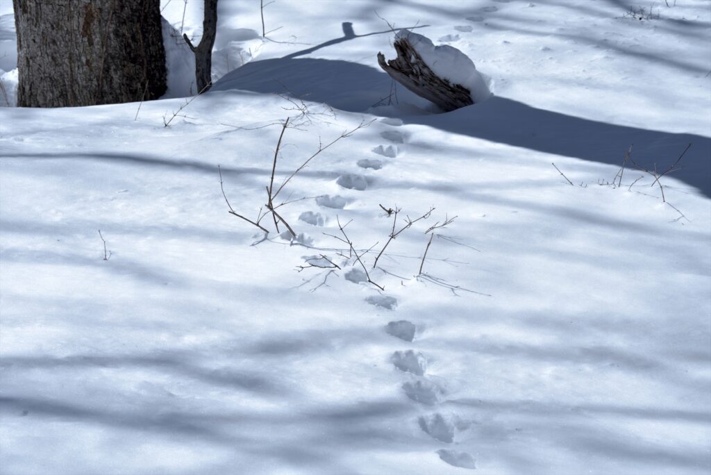新しい雪の上には動物の足跡などの痕跡もたくさんできていました。