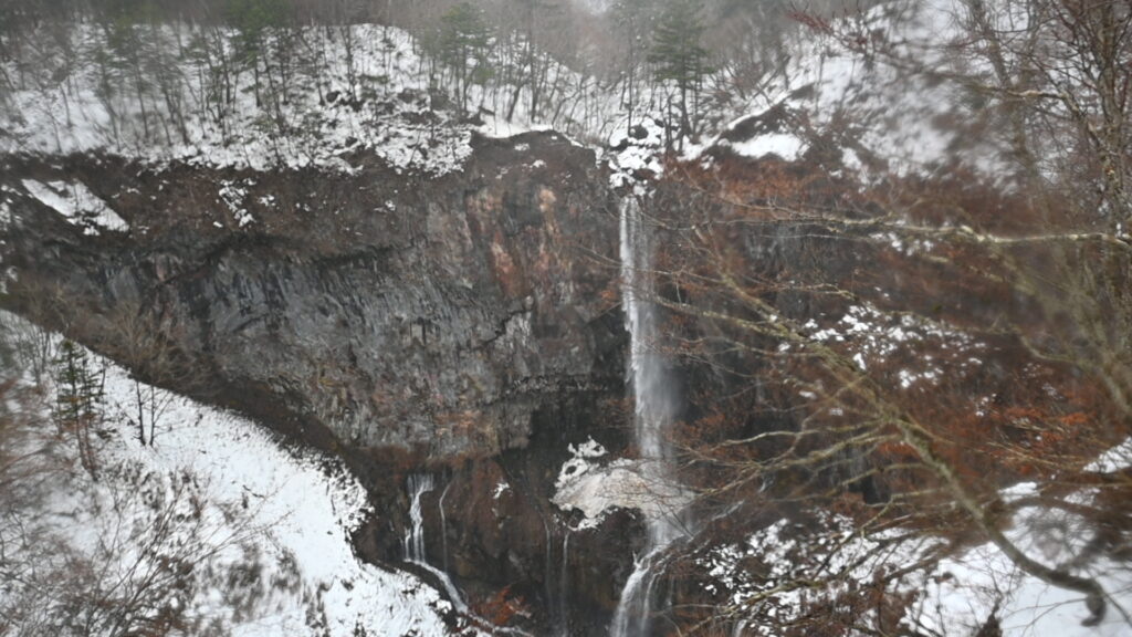 華厳滝は取材日前日に大雪が降ったため雪景色を期待して行きました。