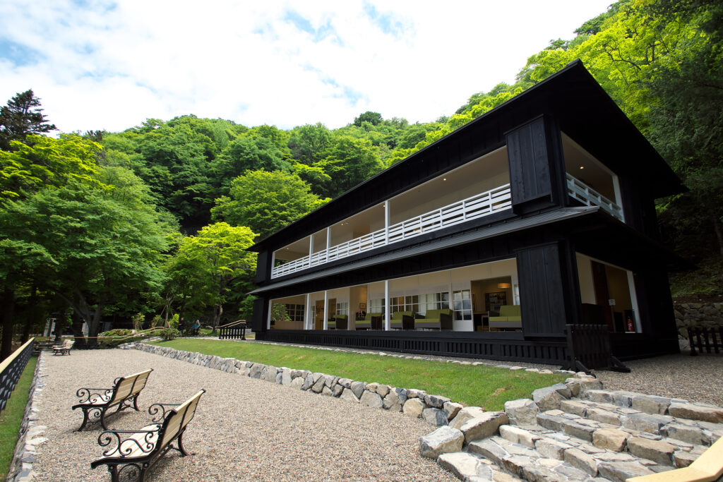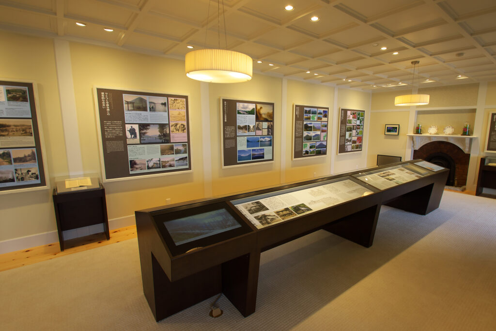 その後、英国大使館別荘として長年使われてきた姿に復元したものです。国際避暑地としての歴史や当時の英国文化について