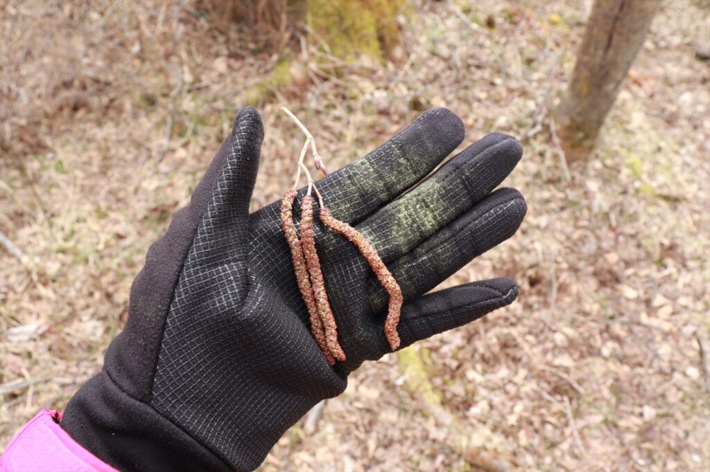 ハンノキの仲間の花です。触ってみると黄色い花粉をたくさん出していました!奥日光では木々の葉が開くのはまだまだ先。風景も少し寂しいですが、「葉がないから花もない」というわけではありませんよ!ハンノキの仲間のように葉よりも先に花をつけ早春に咲く植物たちが子孫を残そうと頑張っています。皆さんもぜひ探してみてくださいね!