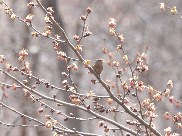 河原ではミソサザイと言う鳥が綺麗な声で囀っていました。春になると渓流沿いの岩や枝先に止まり、盛んに鳴きます。この囀りが周辺の芽吹きつつある木々やヤナギの花と相まってより春らしい雰囲気を醸し出していました。