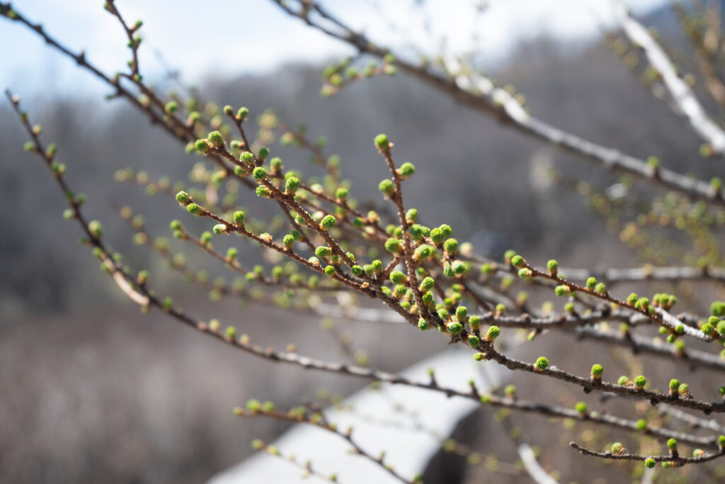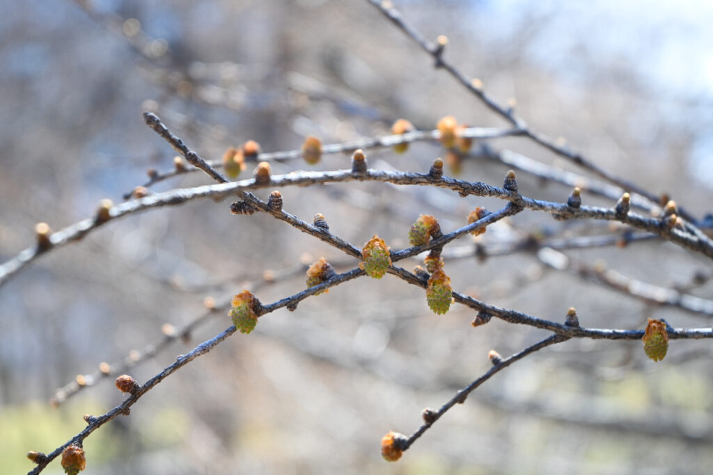 カラマツの葉っぱもちょびっと顔を出していて、優しい黄緑色に癒されました!