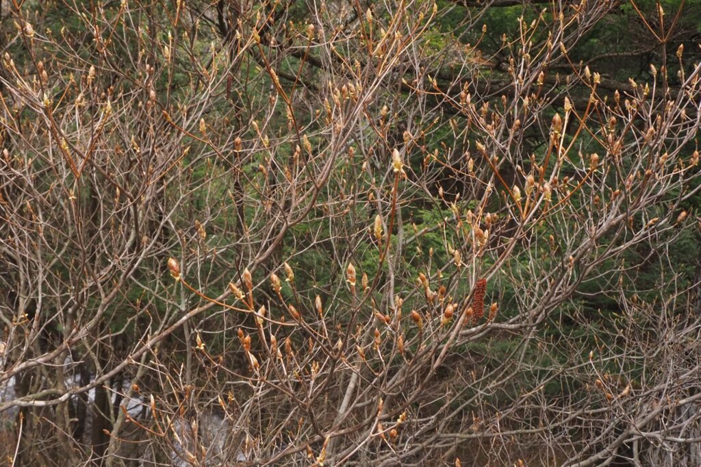 観瀑台から降りる階段の前には、つぼみが残っている木もありました。こちらは強風にも耐えてくれそうです。