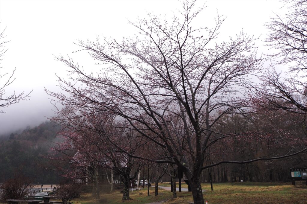 大型連休最終日の今日、奥日光も朝から雨。しかし昨日までの良いお天気のおかげで、サクラの開花も一気に進みました。