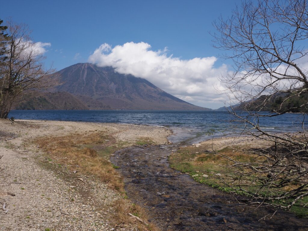 低公害バスで千手ヶ浜バス停を降りたら、まずは湖向かって左手、竜頭滝へつづく北岸コースへ。