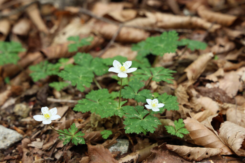 白く小さなワチガイソウやヤマエンゴサク、ウスバサイシンなど複数種類の花がみつかりました。(写真はウスバサイシン)