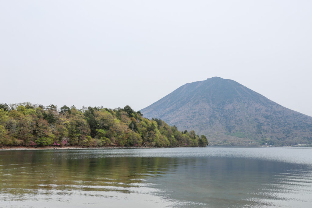 中禅寺湖周辺では新緑が目立ち始め、木々の花が見頃を迎えています。