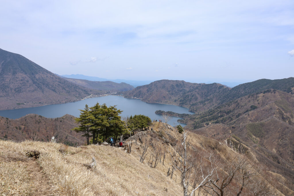 大使館別荘記念公園から30分ほど歩くと、浜辺に降りると男体山と中禅寺湖の絶景を眺められる狸窪に到着します。