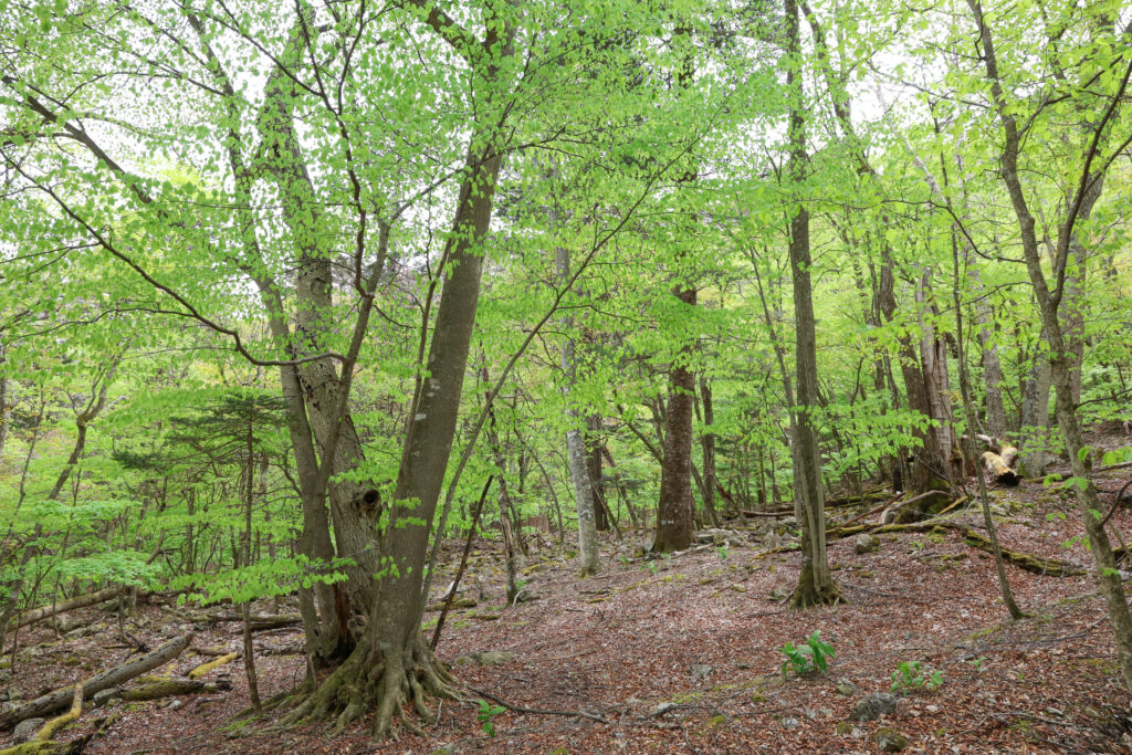 それはブナの木です。ブナは関東地方全体を見てもごく限られた場所にしか生育しておらず、まとまった数のブナが見られるのはとても珍しい場所と言えるのです。(※写真はイヌブナで、ブナとイヌブナ両方が生育しています)