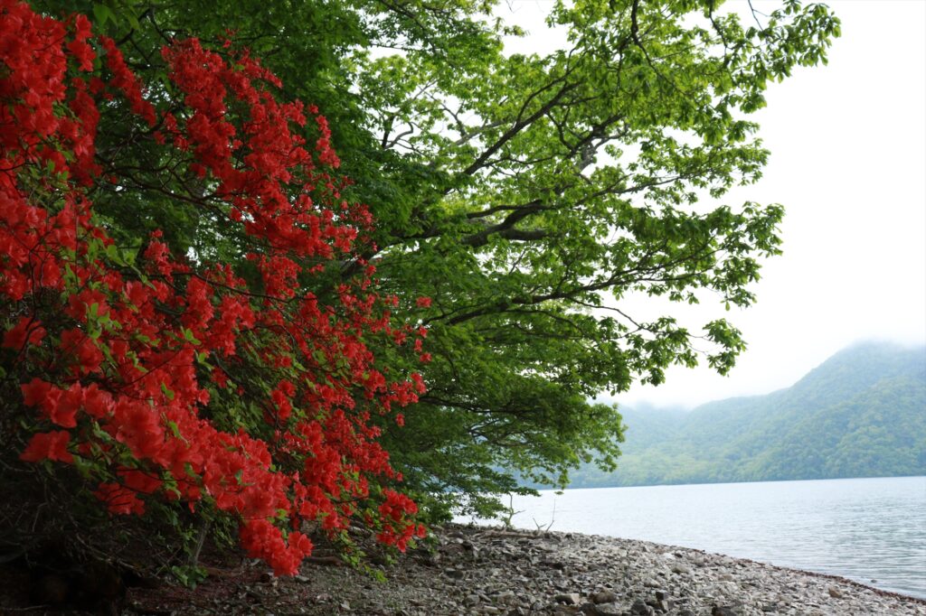 最後に、中禅寺湖北岸(熊窪~栃窪間)。ヤマツツジが見頃です!