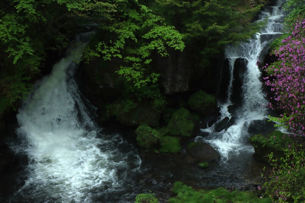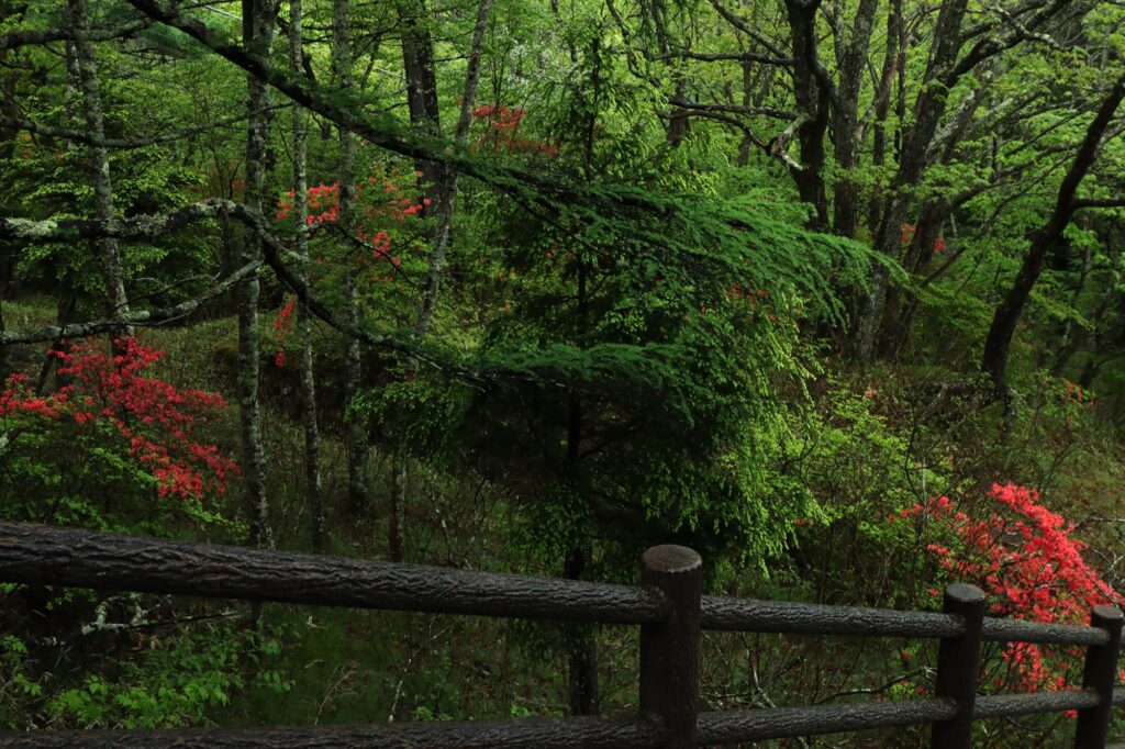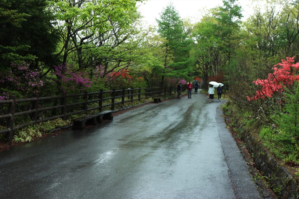 滝中段の歩道ではまだ残るトウゴクミツバツツジとともに歩道を彩っていました。