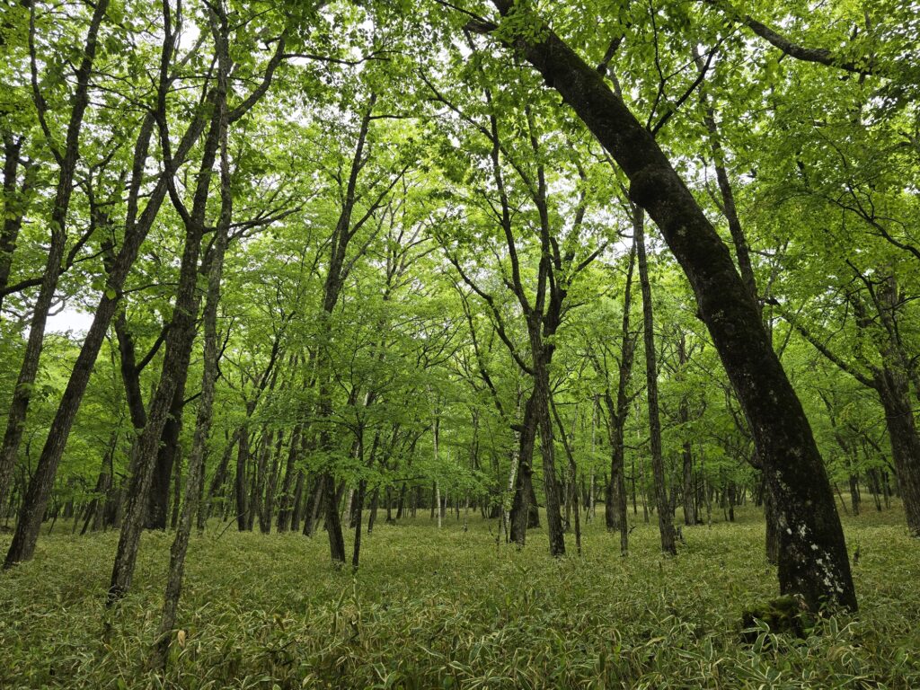 小田代歩道はミズナラの森の中を抜けるので、ギンリョウソウもたくさん!