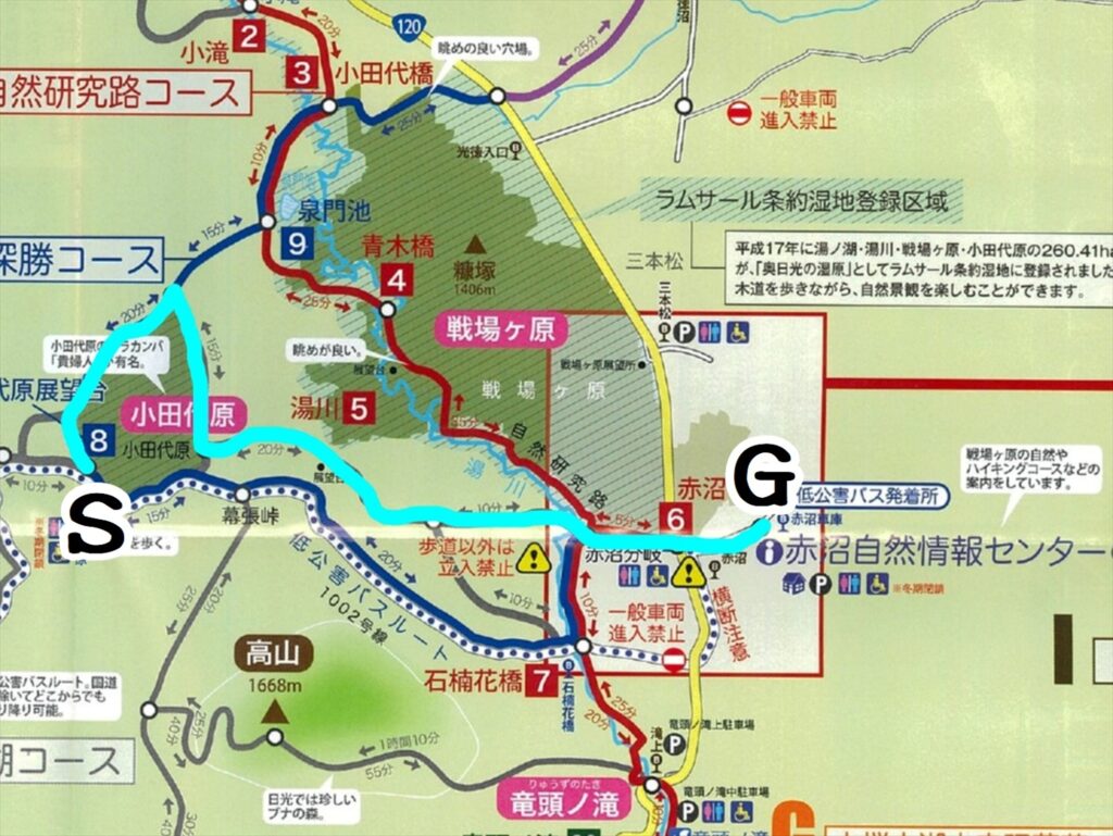 小田代原をぐるっと回って、小田代歩道を通って赤沼へ向かう約1時間のハイキングコースです。