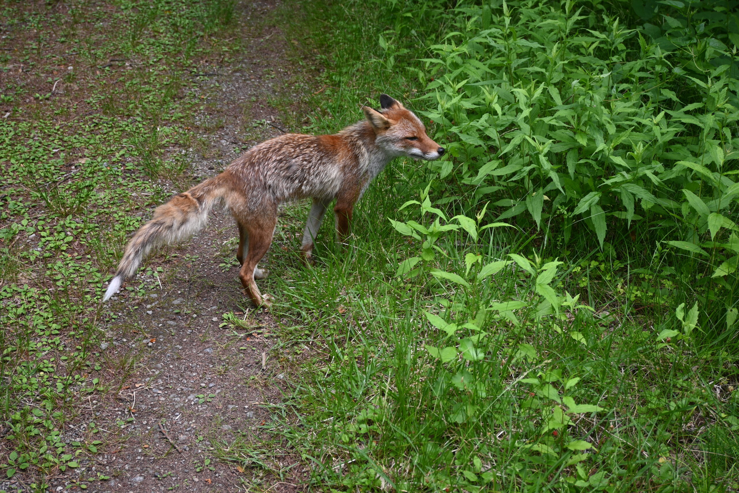 ずっと道を進んでいると、キツネがこちらに向かってきました。