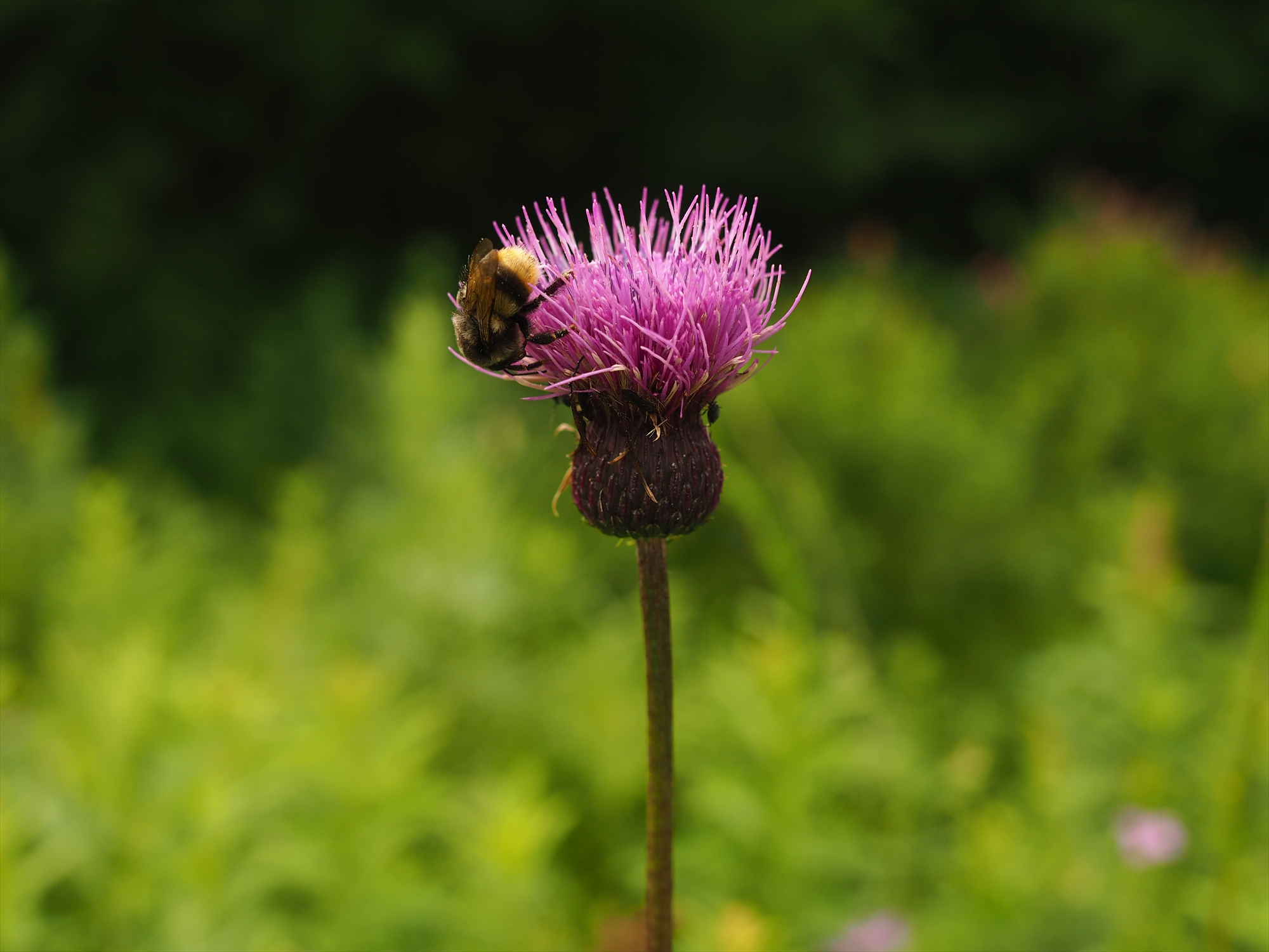 また、ノアザミが来てほしい空を飛ぶチョウやハチはネバネバしない花の上に着地するので問題ありません。