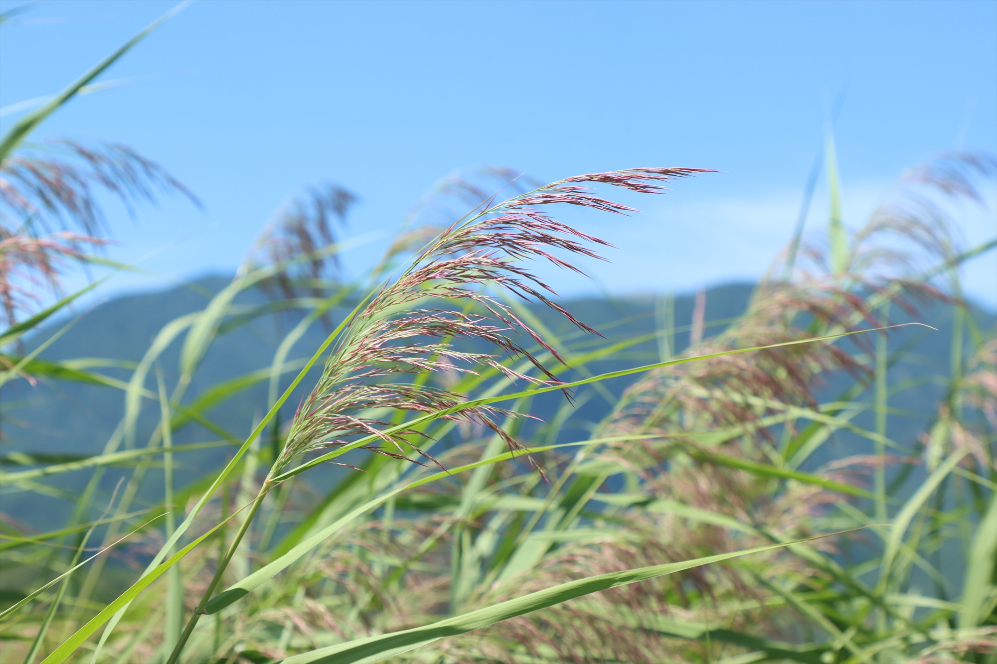 この時期になるとヨシはススキのような穂を伸ばしはじめますがそれが風に吹かれると涼しげに揺れ、葉っぱ同士がこすれてサラサラと心地よい音色を奏でていました。
