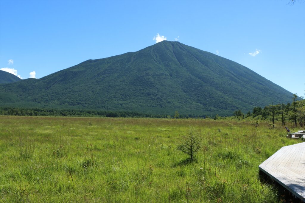 そんな戦場ヶ原の湿原が開けた場所で景色を眺めてみると、生えている草が少しずつ緑から赤褐色へと変わり始めていたり、イネ科の植物たちも穂を伸ばしてほんのり色づいていたりと早くも秋の様相へと変化し始めていました。