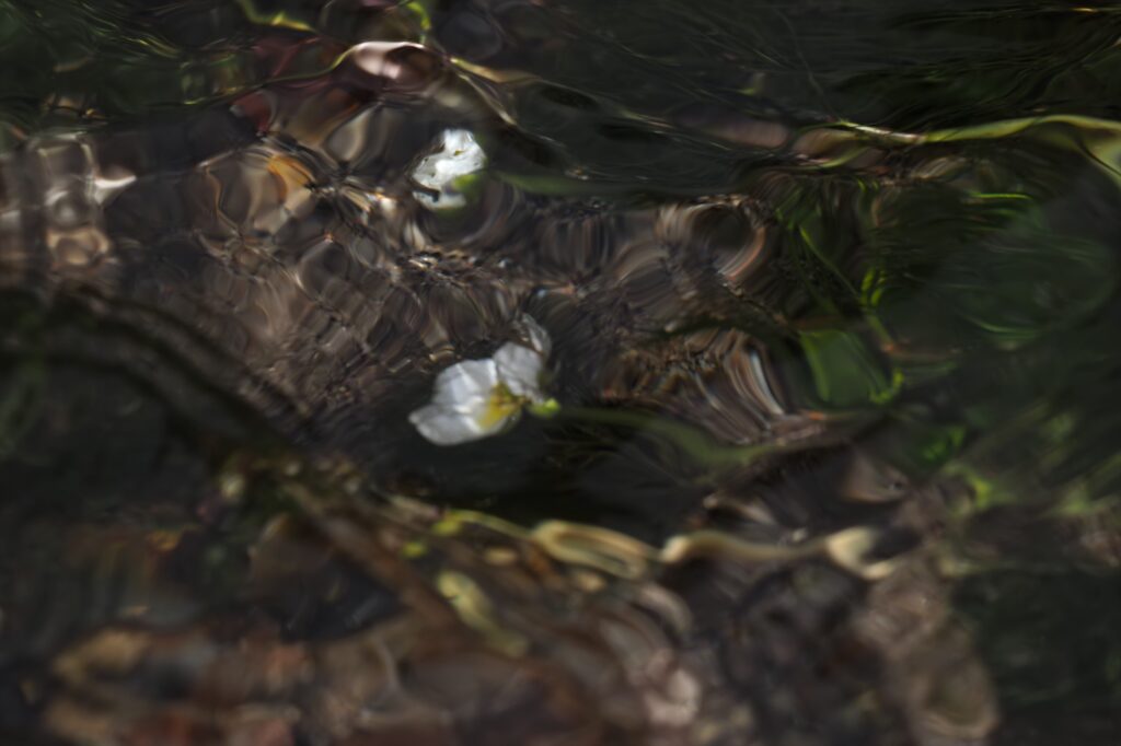 水からぴょこんと顔お出している小さな白い花がとっても愛らしい!