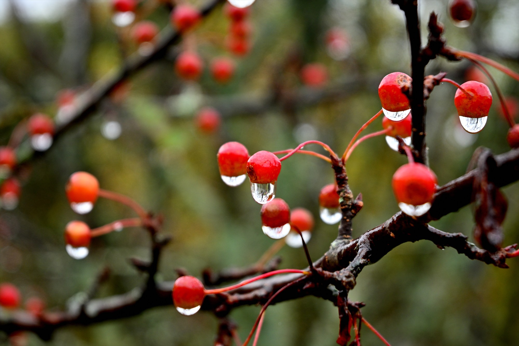 こちらも雨の日ならではの雫が実から垂れ下がっている可愛らしい姿を見ることができました。