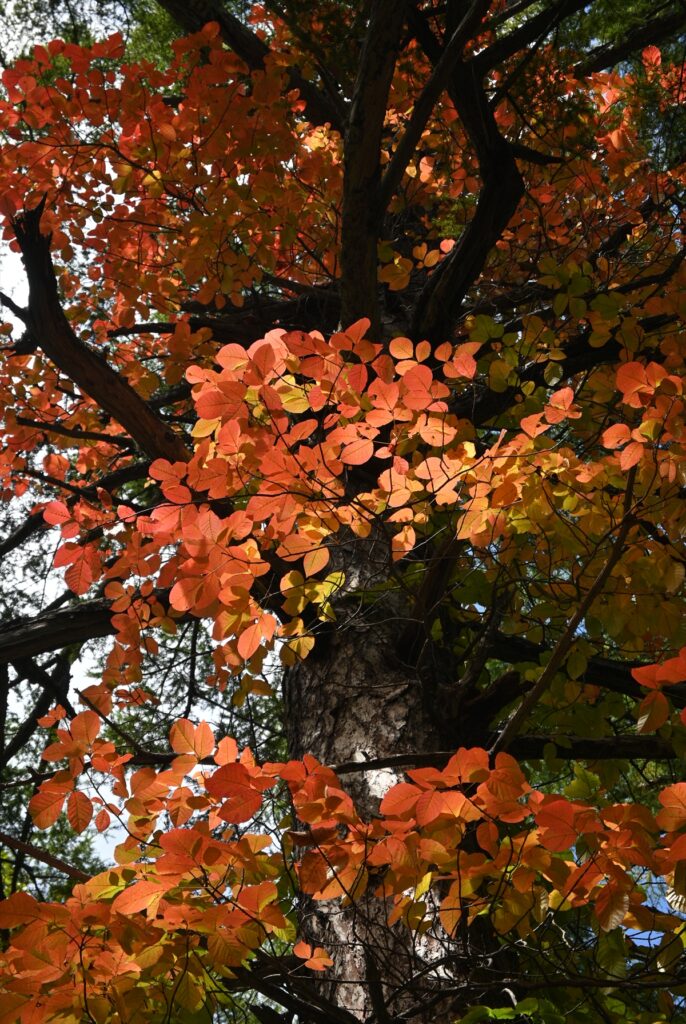 木の周りを這いあがるような紅葉が見られます。まるで炎に包まれているような迫力があります。