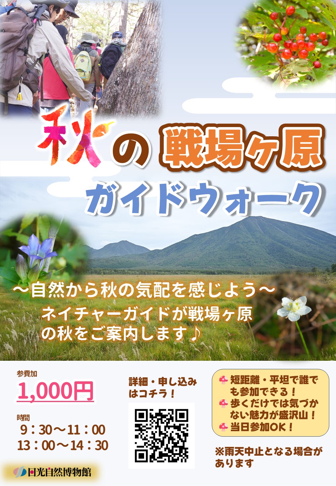 日光自然博物館では戦場ヶ原の秋をガイドの解説付きでお手頃お手軽に楽しめる戦場ヶ原秋のガイドウォークを開催しています。