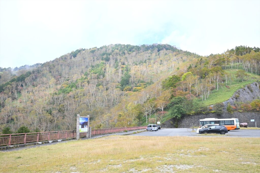駐車場から足尾方面にかけては、山肌の上部が色付き見頃に入ったようです!
