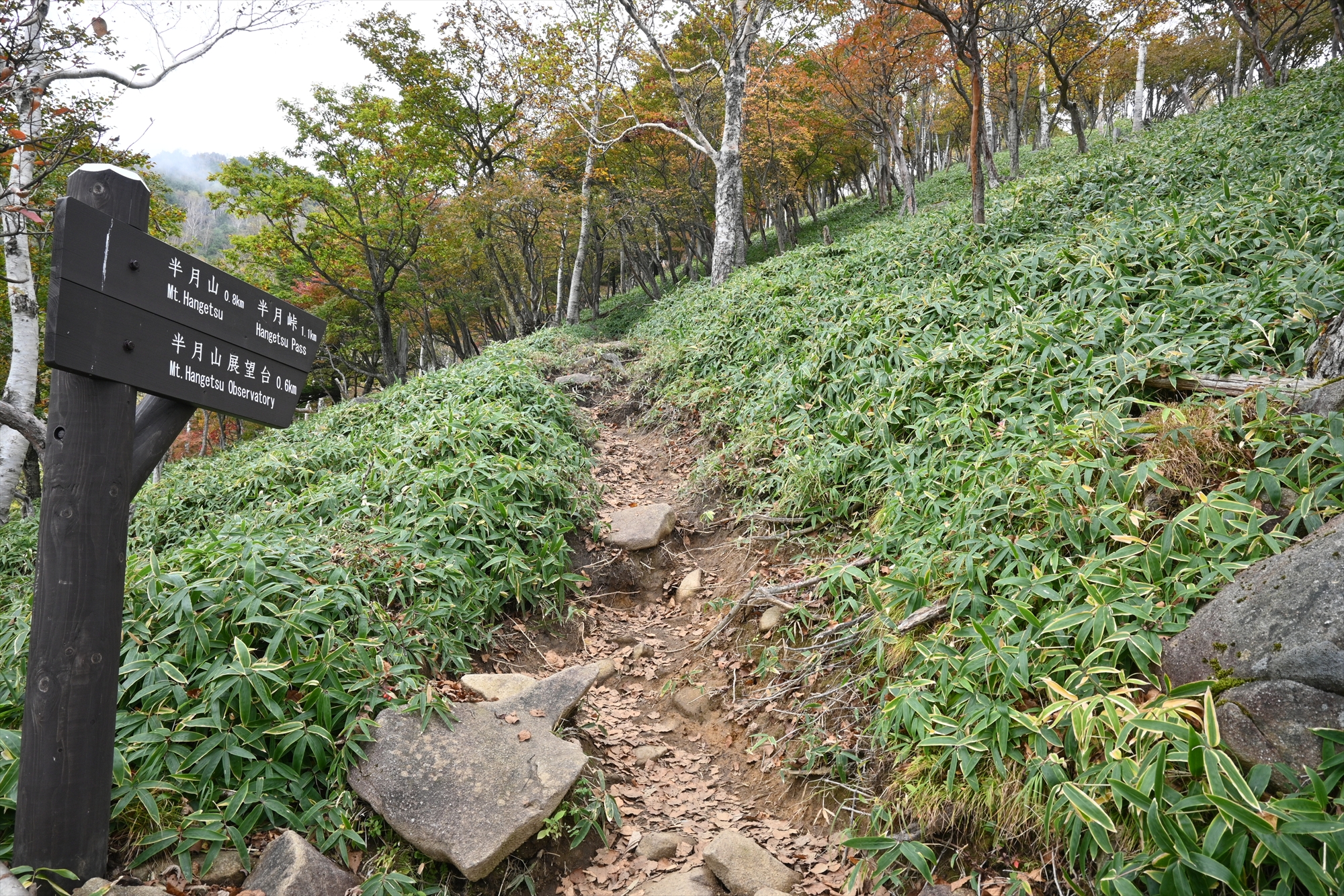 こちらはカンバ類の淡い黄色が少なくなってきましたが、代わりにカエデやツツジの紅葉が目立ち始めてきました。