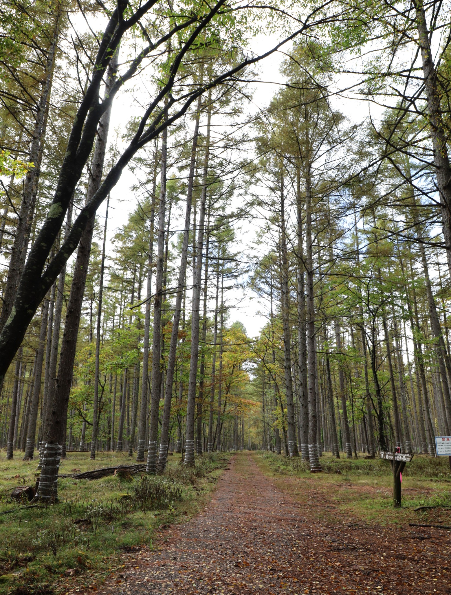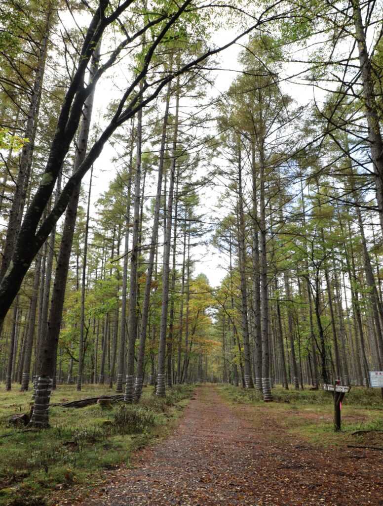 湖に向かうまでの道中のカラマツが何となく黄色味を帯び始めていました。