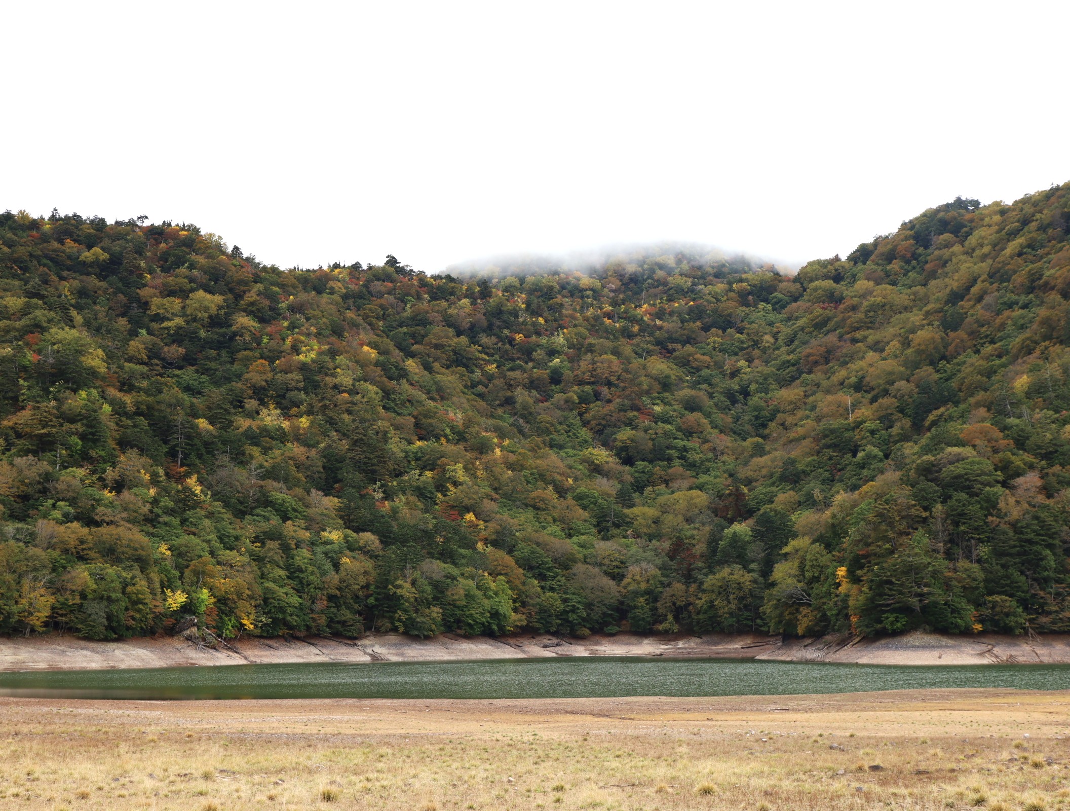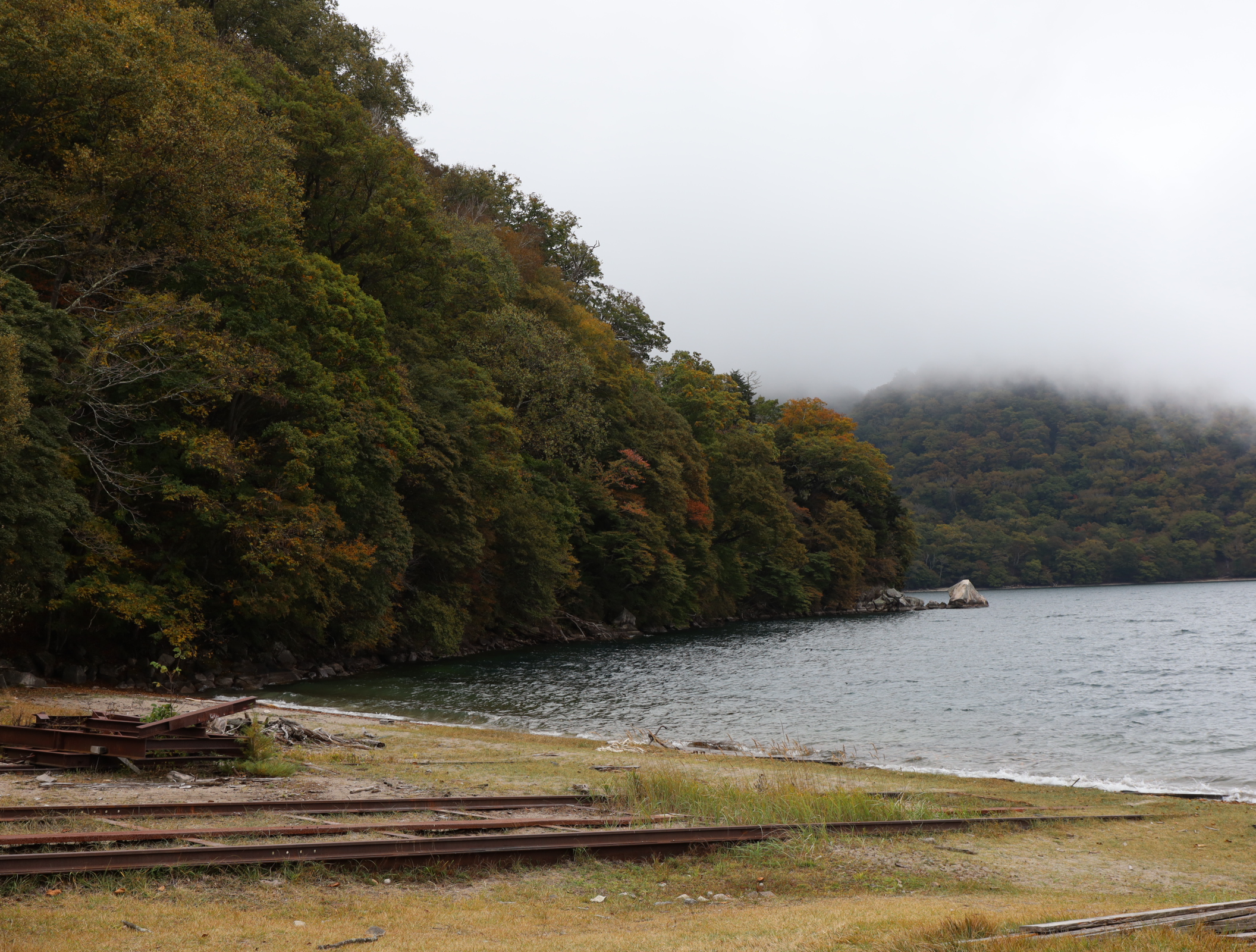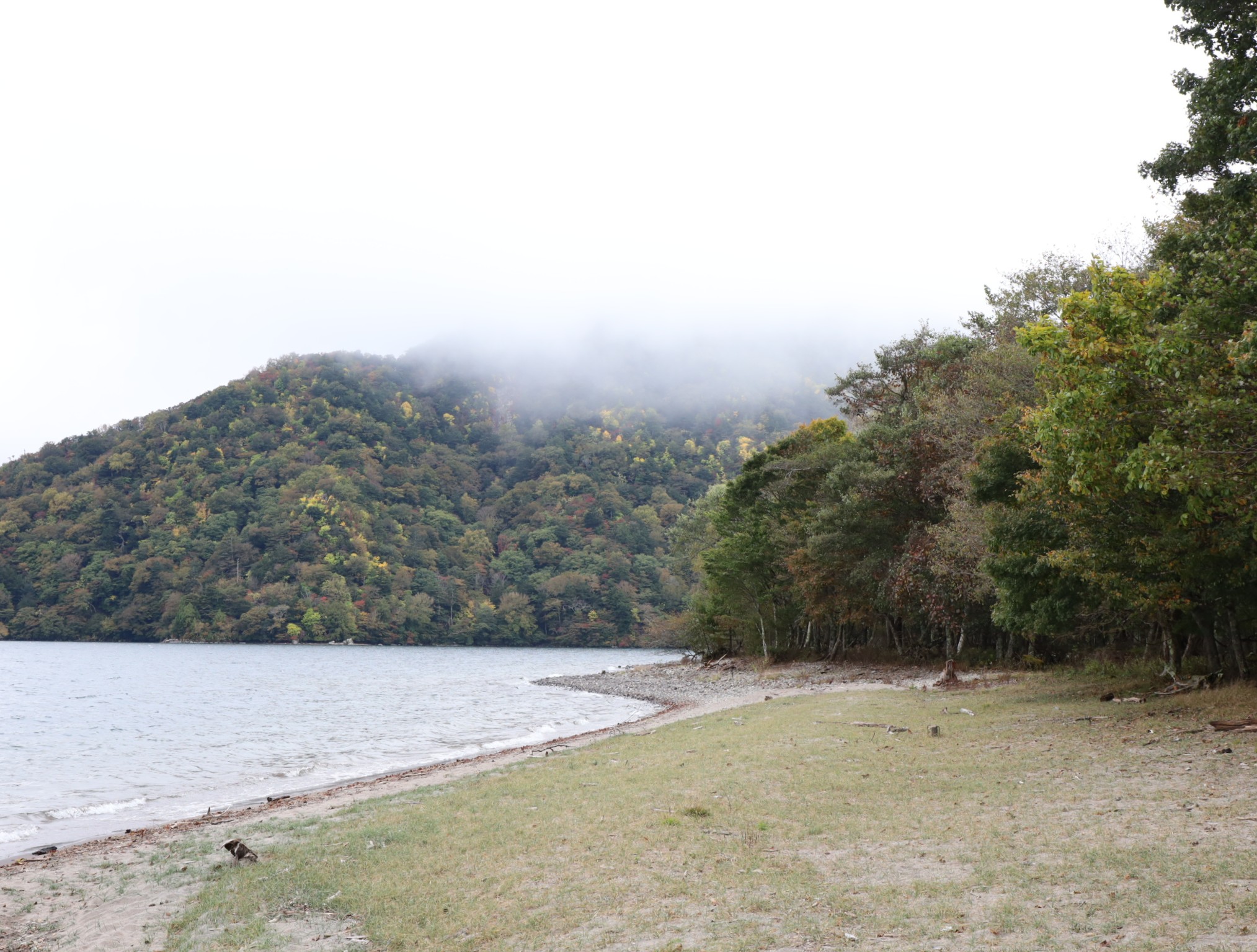 湖面に近いところでもまだこれから濃くなりそうですが色付きの気配は十分に出ています。