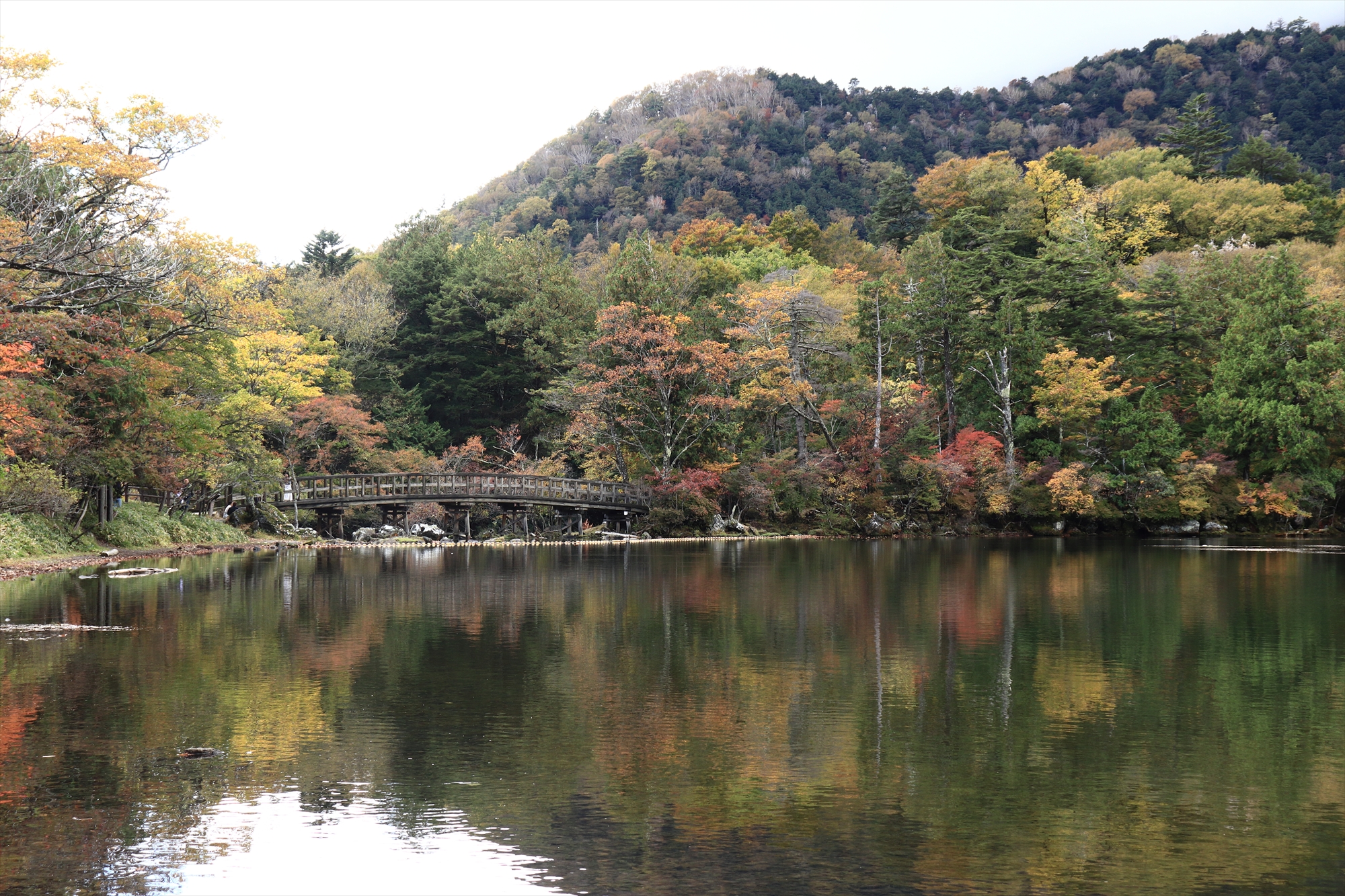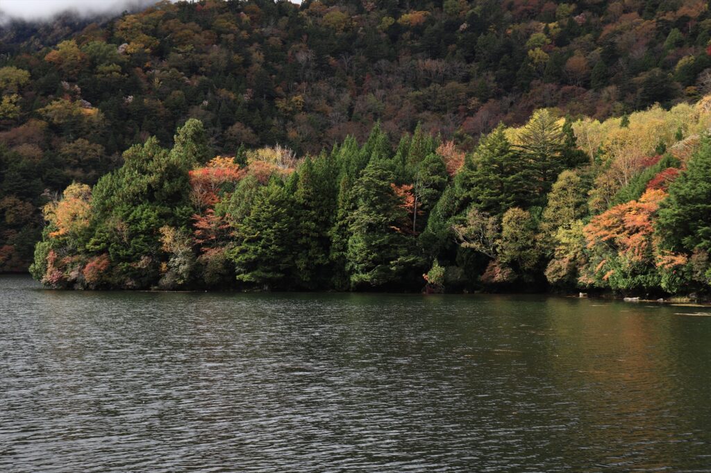 さらに風がないときは、湖面に紅葉が移りとても美しいですし、湯ノ湖は針葉樹が生えているので針葉樹の緑と赤の対比もきれいです!