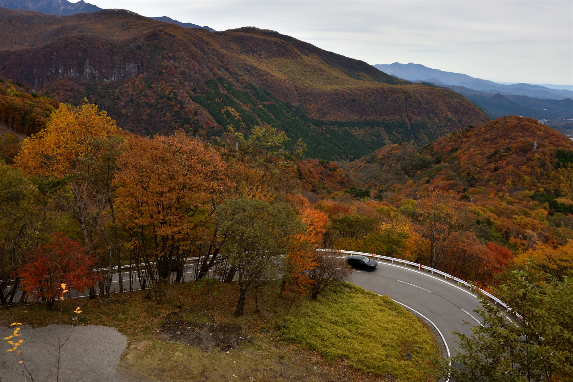 いろは坂からさらに標高が下がるのですが、こちらはしっかりと見頃入りし、痛みのない鮮やかな色合いや色づき始まりのグラデーションも見ることができます。