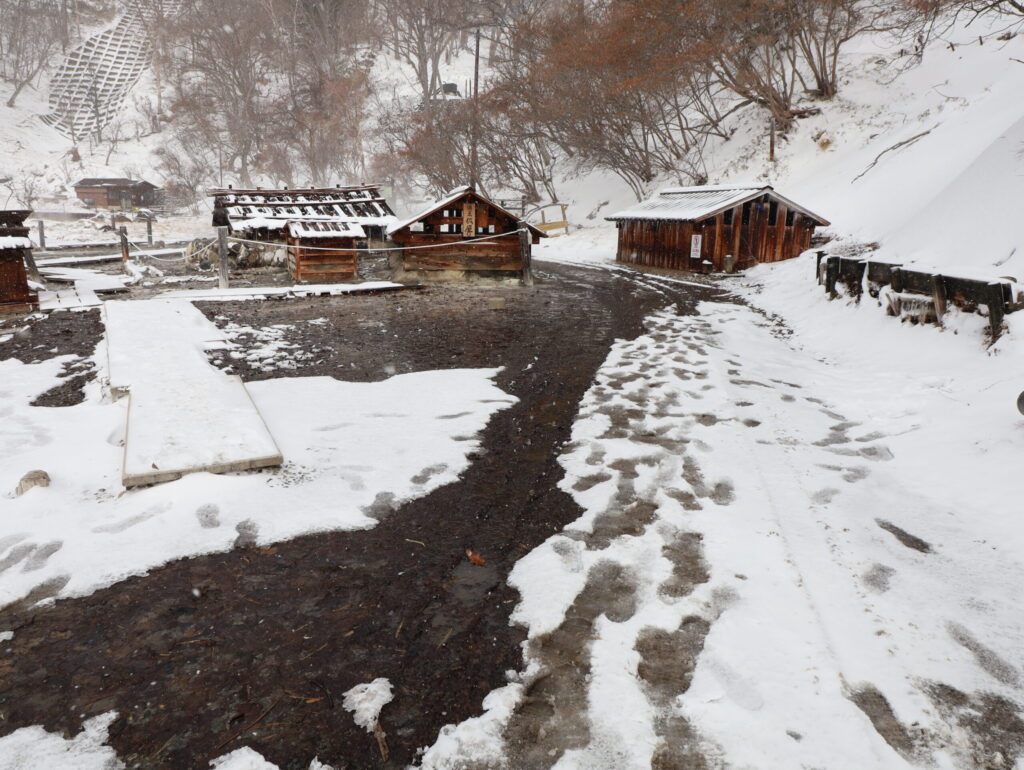 一面の雪景色となっているものの、ウィンターアクティビティにはまだ早いような状態です。