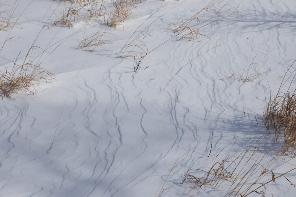 他にも、強風によって雪が雪面を移動することで、風紋と呼ばれる模様が出来ていました。
