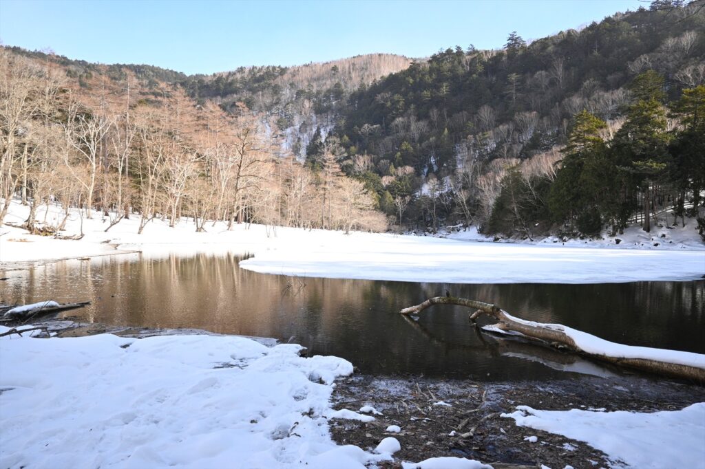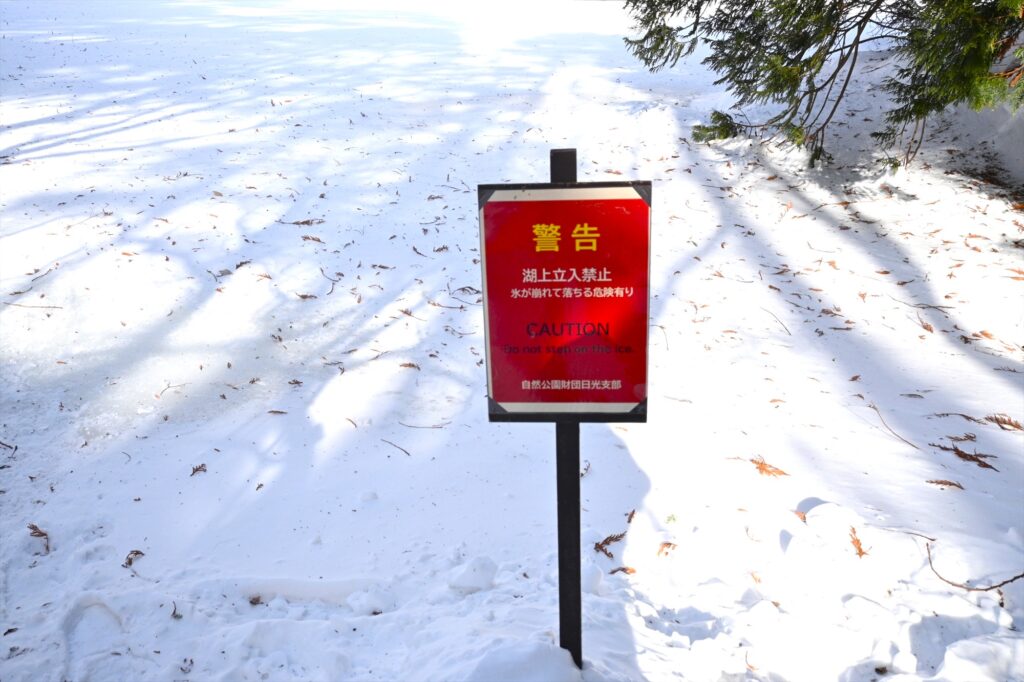 ※刈込湖や途中にある蓼ノ湖は氷の上に乗ると割れて落水する危険があります。湖の中には立ち入らないようお願いします。