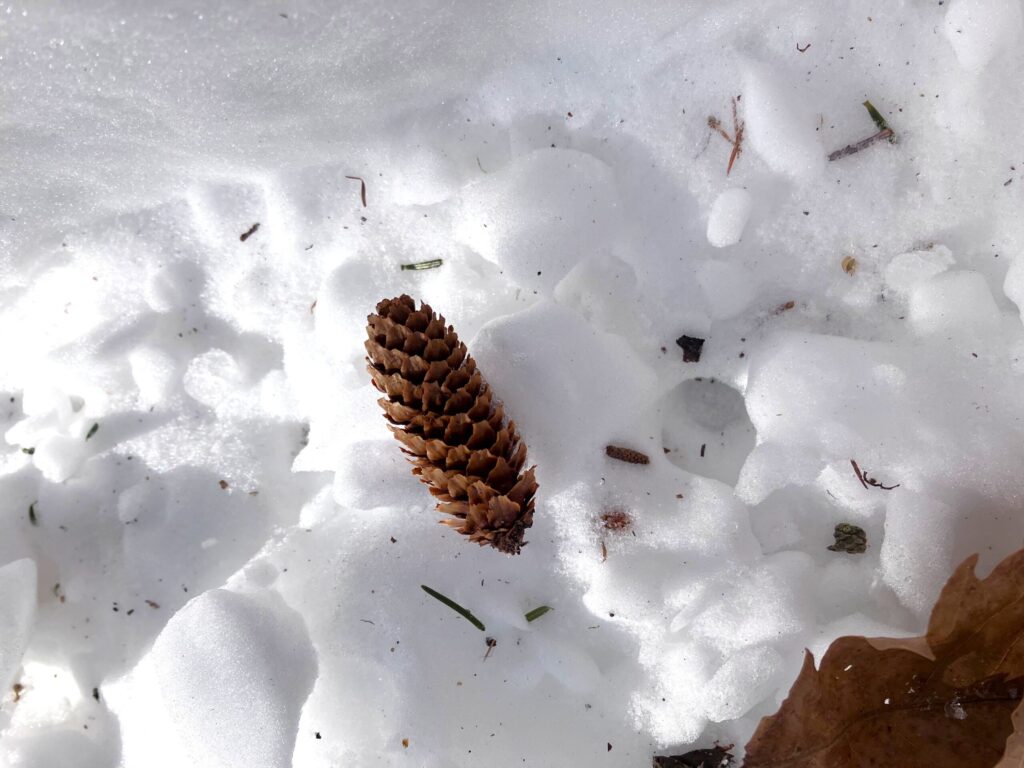 また、土の上では同化して見落としてしまいそうな物も白い雪が沢山積もるので目につきやすくなります。