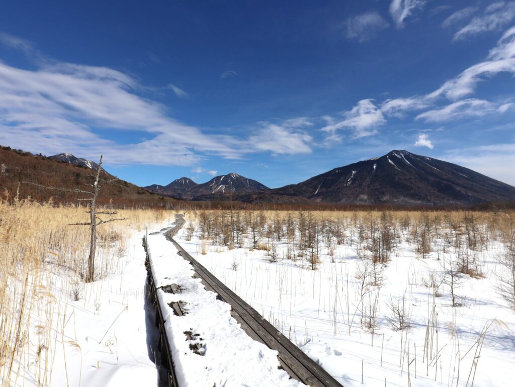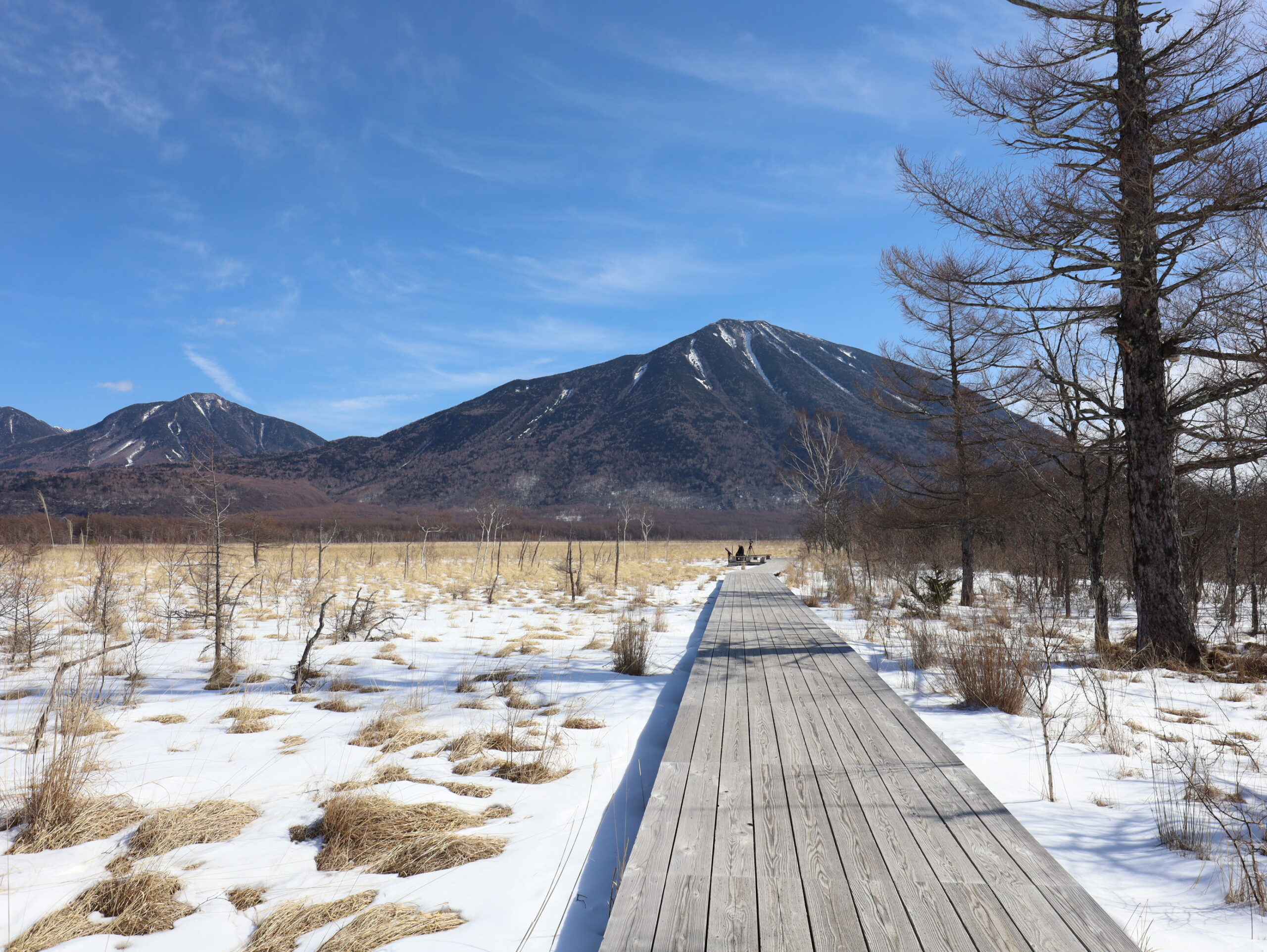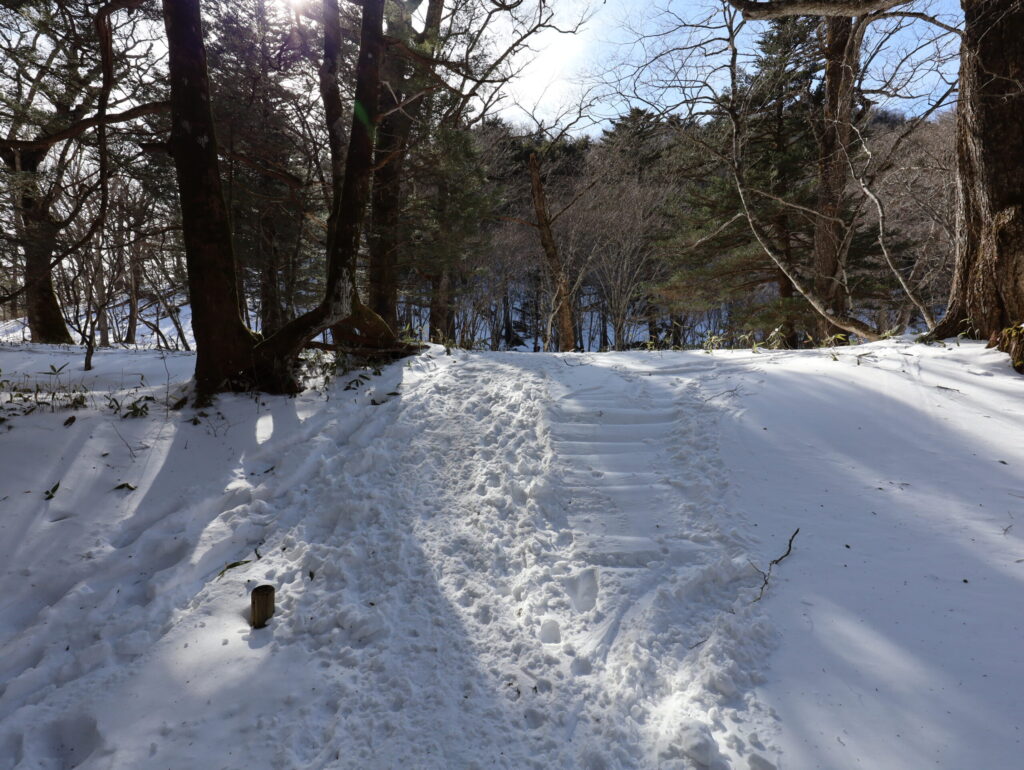 展望台付近などほぼ雪がない場所もあるので木道を傷つけないように状況に応じて着脱を心掛けたいところです。