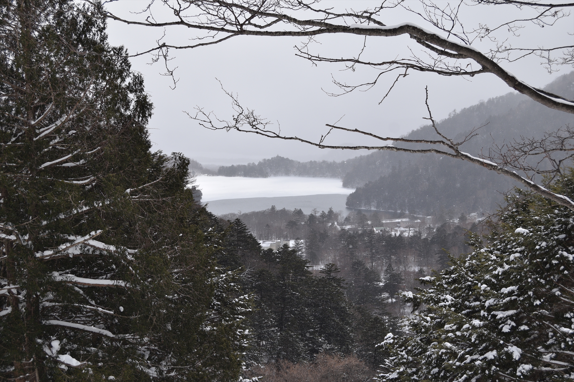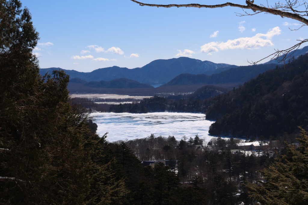 しかし、奥には雪をかぶった戦場ヶ原、さらに奥には真っ青の中禅寺湖まで望めました。