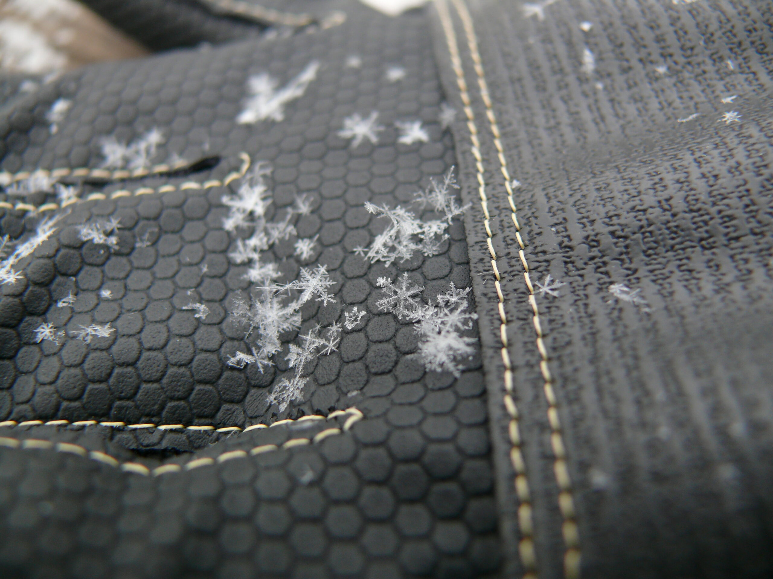 山から飛んできた雪が、 服に落ちてキラキラと輝いていたんです!