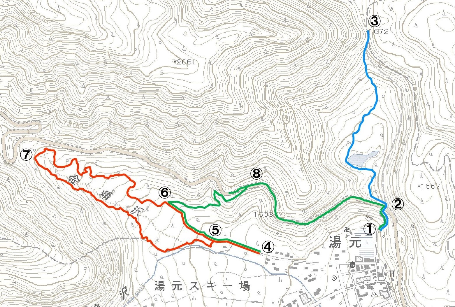 ↓湯元スノーシューコースの地図↓
