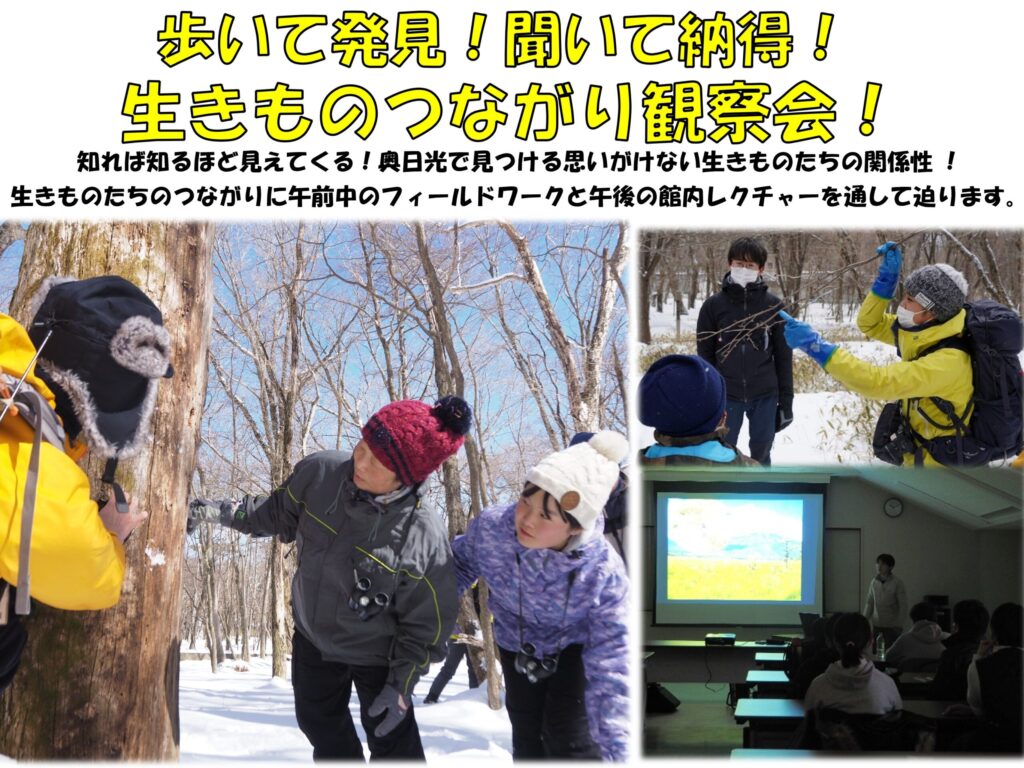 3月15日(日)には、奥日光いきものつながり観察会を開催します。いろいろな生き物が関わり合って暮らす奥日光の自然の中を、自然解説員と一緒に歩き、思いがけない生き物たちの関係性を見つけましょう!
