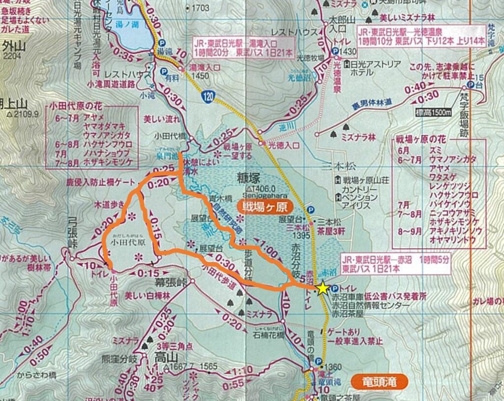 今回は赤沼を出発し戦場ヶ原通って泉門池、そこから折り返して小田代原を経由して一周するコースを歩いてきました。
